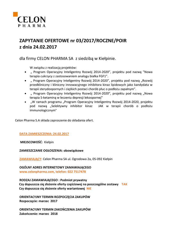 ZAPYTANIE OFERTOWE nr 03/2017/ROCZNE/POIR