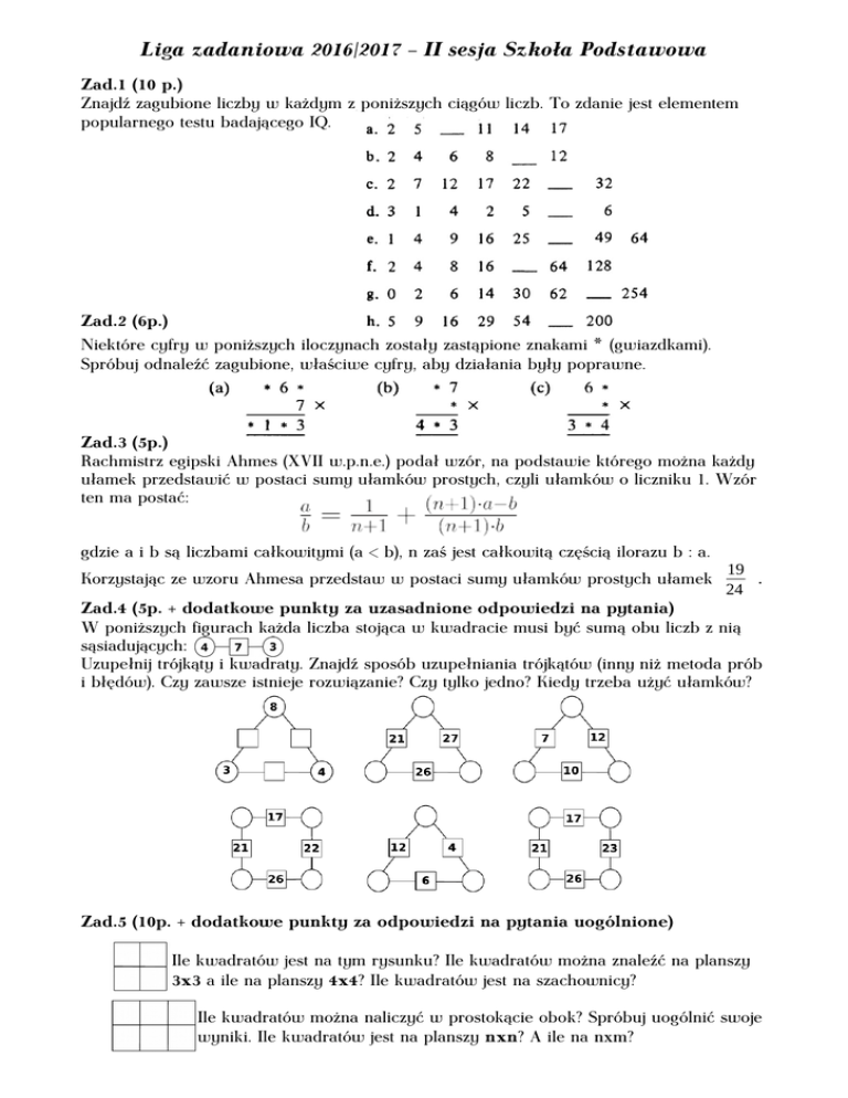 Liga zadaniowa 2016/2017 – II sesja Szkoła Podstawowa