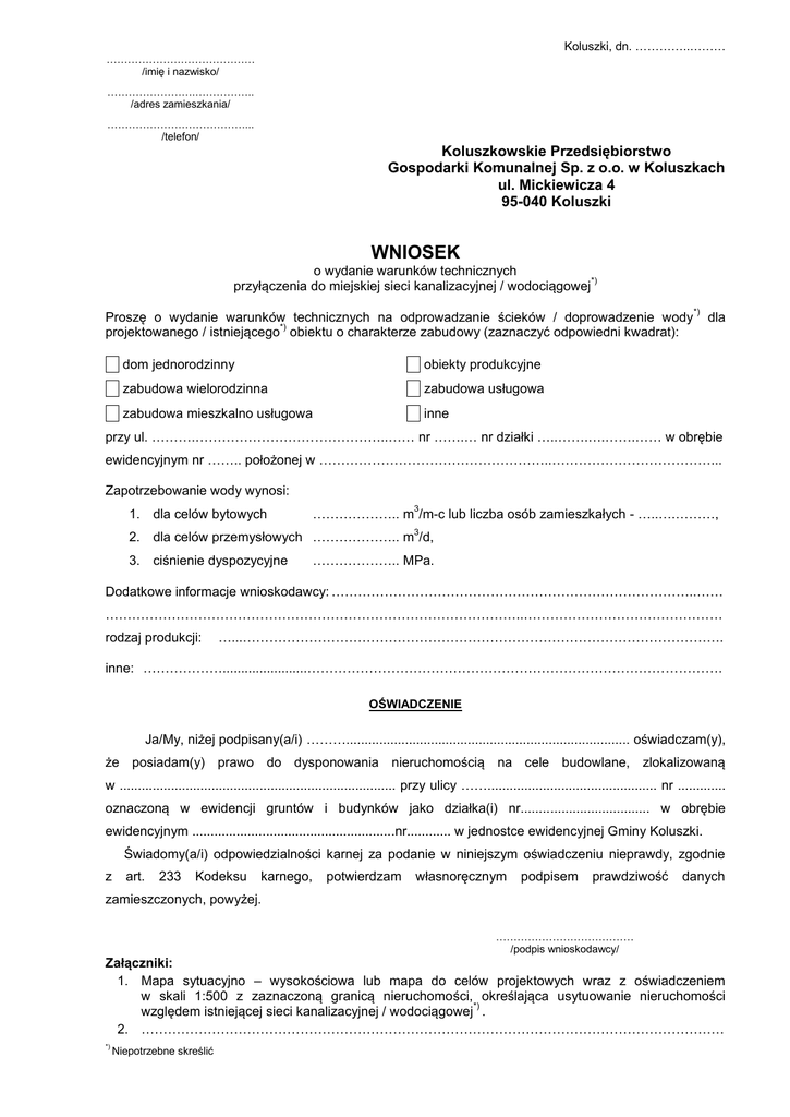 wniosek pdf - Koluszkowskie Przedsiębiorstwo Gospodarki