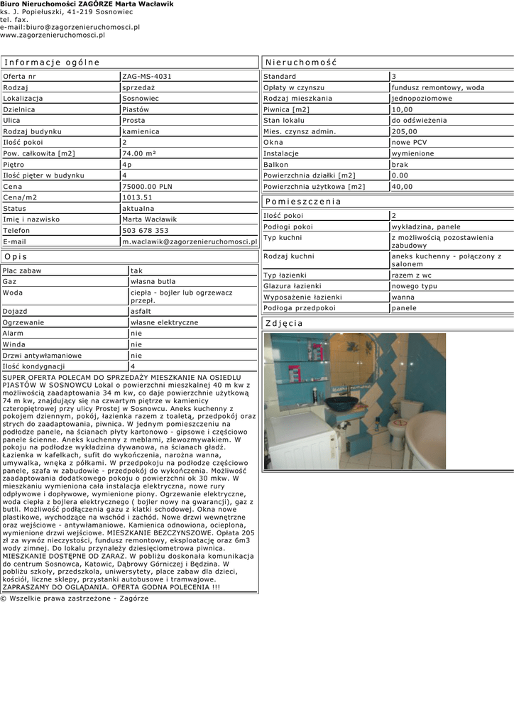 Drukuj PDF - Biuro Nieruchomości ZAGÓRZE