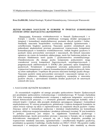 Zajdler E.- Języki rzadk nauczane w Europie w świetle ESOKJ