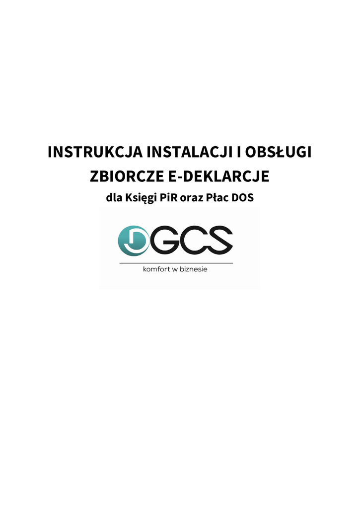 INSTRUKCJA INSTALACJI I OBSŁUGI ZBIORCZE E-DEKLARCJE dla Księgi PiR oraz Płac DOS I. Instalacja Programu Dla programów DOS ( Płace i Księga) Instalacja musi odbyć się na serwerze w folderze głównym Księga. Serwer musi mieć nadany stały adres IP. II. Uruchomienie i wysyłanie Zbiorczych E-deklaracji w KPiR – DOS 1. Program Zbiorcze- E-deklaracje musi zostać zainstalowany w folderze głównym Księga. np. C:\dgcs\ksiega (jeżeli pracujemy w wieloksiędze również wskazujemy folder główny Księga. ) Instalacja musi zostać przeprowadzona na komputerze, na którym zainstalowany jest program. Nie może odbywać się na zmapowanym dysku sieciowym. 2. Po instalacji pierwsze uruchomienie musi odbyć na komputerze, na którym zainstalowany jest program księga z dowolnej księgi z poziomu modułu DEKLARACJE wybierając E-DEKL. 3. W opcji Dane należy uzupełnić kody urzędów skarbowych dla VAT i PIT. 4. następnie sporządzamy np. deklarację VAT 7. 5. Jeżeli wcześniej nie mieliśmy zapisanych E-deklaracji z, których były by dane do przeniesienia wybieramy „ Nie przenoś” w kolejnych miesiącach wskazujemy deklarację, z której mają zostać przeniesione dane. 6. W KONFIGURACJI należy uzupełnić dane firmy i właścicieli – nie są one przenoszone ( jeżeli nie widzimy napisu „Konfiguracja” należy formularz otworzyć w pełnym oknie) 7. Wysyłanie z programu Księga PiR DOS możliwe E- deklaracji pojedynczo lub zbiorczo. Wchodzimy w opcję Przygotuj e-Deklarację jeżeli program nie stwierdzi błędów możemy ją wysłać bezpośrednio, wówczas w polu nr 2 deklaracji VAT 7 zostanie nam automatycznie nadany nr wysyłki. Zapisujemy wystawioną deklarację. 8. Pracując w wieloksiędze mamy możliwość przygotowania wysłania wielu wcześniej przygotowanych e-Deklaracji Uwaga! Wysyłając zbiorczo e-Deklaracje nie zostanie nam nadany numer nadania w polu nr 2 deklaracji. 9. Przygotowane do wysłania deklaracje możemy wysłać bez potrzeby uruchamiania programu księga wystarczy uruchomić ikonę na pulpicie 10. Po wysłaniu E-deklaracji pobieramy UPO III. Uruchomienie Zbiorczych e-Deklaracji w Płacach – DOS 1. Przeprowadzamy identycznie jak opisane w pkt. 1 i 2 dla w KPiR – DOS 2. W opcji Dane \ DEKLARACJE DOS/WINOWS zaznaczamy windows 3. W opcji LISTA\PŁACE PRAC PIT-11.. wybieramy PIT-11 oraz wybranego pracownika, klawiszem F7 -deklarację PIT 11, następnie e-Deklaracje PIT -11 4. Jeżeli nie mamy uzupełnionych kodów urzędów skarbowych musimy je wprowadzić dla każdego pracownika ( Dane urzędów skarbowych można wcześniej uzupełnić pracownikom w opcji PRACOWNICY\ F12 ) 5. Zbiorcze wysyłanie PIT 11 i PIT 40 W przypadku kiedy w firmie mamy zatrudnionych kilkuset pracowników wysyłka e-Deklaracji przeprowadzona jest zestawami po 100 pracowników IV. W przypadku braku połączenia się z bazą danych proszę sprawdzić: 1. czy zainstalowany jest serwer Firebird: Start > Ustawienia > Panel sterowania > Firebird 2.5 Serwer Menager, po uruchomieniu powinna być informacja, że serwer jest uruchomiany. Można także sprawdzić procesy w Menedżerze Zadań Windows czy są uruchomione fbserver.exe i fbguard.exe 2. Proszę sprawdzić lokalizację pliku bazy nadrzędnej i pliku bazy danych: Konfiguracja bazy nadrzędnej: C:\dGCS\Ksiega \db\BNEDEKLDOS proszę nie zmieniać użytkownika bazy danych i hasła 3. Połączenie programu z serwerem Firebird: np. Start > Uruchom > wpisać: cmd > w oknie wiersza poleceń proszę wpisać polecenie: telnet adres_IP_komputera 3050 np.: telnet 127.0.0.1 3050 jeśli będzie informacja: Łączenie z 127.0.0.1.3050... Nie można nawiązać połączenia z hostem na porcie 23: Połączenie nie powiodło się wówczas proszę odblokować połączenie np. w zaporze system Windows np. Start > Ustawienia > Panel sterowania > Zapora systemu Windows > zakładka Wyjątki > Dodaj port > wprowadzić ustawienia jak poniżej: Nazwa: Firebird Numer portu: 3050 Protokół: TCP 4. Sprawdzić oprogramowania antywirusowe / firewall, które mogłoby spowodować blokadę połączenia na porcie 3050.