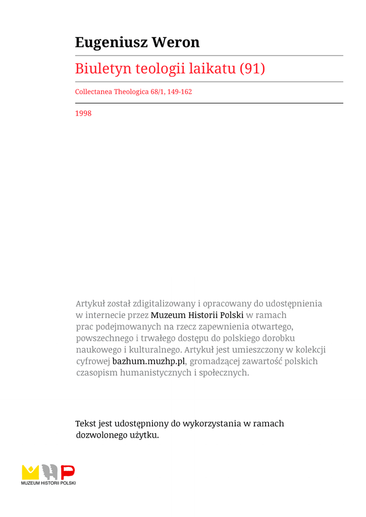 Eugeniusz Weron Biuletyn teologii laikatu (91)