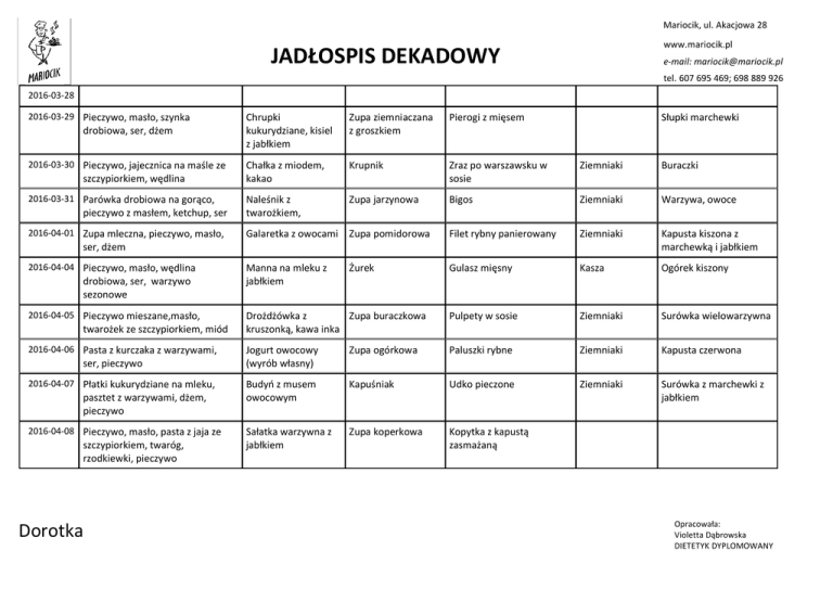 jadłospis dekadowy - Przedszkole "Dorotka"