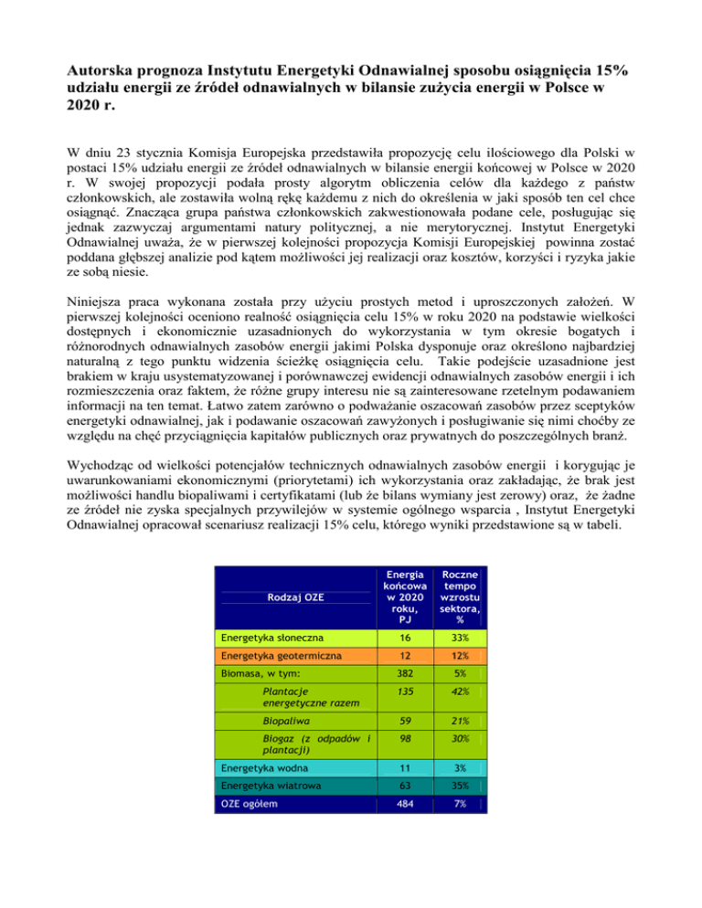 Autorska prognoza Instytutu Energetyki Odnawialnej sposobu