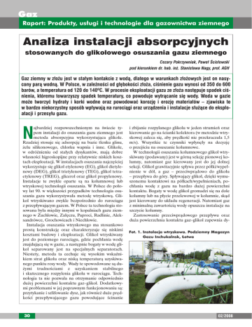 Gaz Raport: Produkty, us∏ugi i technologie dla gazownictwa ziemnego Analiza instalacji absorpcyjnych stosowanych do glikolowego osuszania gazu ziemnego Cezary Pokrzywniak, Pawe∏ Âcis∏owski pod kierunkiem dr. hab. in˝. Stanis∏awa Nagy, prof. AGH Gaz ziemny w z∏o˝u jest w sta∏ym kontakcie z wodà, dlatego w warunkach z∏o˝owych jest on nasycony parà wodnà. W Polsce, w zale˝noÊci od g∏´bokoÊci z∏o˝a, ciÊnienie gazu wynosi od 350 do 600 barów, a temperatura od 120 do 140ºC. W procesie eksploatacji gazu ze z∏o˝a nast´puje spadek ciÊnienia, któremu towarzyszy spadek temperatury, co powoduje wytràcanie si´ wody. Woda w gazie mo˝e tworzyç hydraty i korki wodne oraz powodowaç korozj´ i erozj´ materia∏ów – zjawiska te w bardzo niekorzystny sposób wp∏ywajà na rurociàgi oraz urzàdzenia i instalacje s∏u˝àce do eksploatacji i przesy∏u gazu. N ajbardziej rozpowszechnionym na Êwiecie typem instalacji do osuszania gazu ziemnego jest metoda absorpcyjna wykorzystujàca glikole. Rzadziej stosuje si´ adsorpcj´ na bazie tlenku glinu, ˝elu silikonowego, chlorku wapnia i inne. Glikole, w odró˝nieniu od sta∏ych dysykantów, majà dobre w∏asnoÊci higroskopijne przy relatywnie niskich kosztach eksploatacji. W instalacjach osuszania najcz´Êciej wykorzystuje si´ glikol etylenowy (EG), glikol dietylenowy (DEG), glikol trietylenowy (TEG), glikol tetraetylenowy (TREG), glicerol oraz glikol propylenowy. Instalacje te zwykle oparte sà na kolumnowej lub wtryskowej technologii osuszania. W Polsce do po∏owy lat 90. w wi´kszoÊci przypadków technologia osuszania gazu wykorzystywa∏a metod´ wtryskowà. Glikol wtryskiwano zwykle bezpoÊrednio do rurociàgu z przep∏ywajàcym gazem. W Polsce ta technologia stosowana by∏a mi´dzy innymi w kopalniach gazu ziemnego w ˚uchlowie, Za∏´czu, Paproci, Radlinie, Aleksandrówce, Grochowicach i Niechlowie. Instalacja osuszania wtryskowego ma stosunkowo prostà konstrukcj´ oraz charakteryzuje si´ niskimi kosztami budowy i eksploatacji. Glikol wtryskiwany jest do poziomego rurociàgu, gdzie poch∏ania wod´ znajdujàcà si´ w gazie, a nast´pnie bogaty w wod´ glikol separowany jest na specjalnych separatorach. Niestety, metoda ta cechuje si´ wysokim wskaênikiem strat glikolu oraz niskà temperaturà uzyskiwanego punktu rosy wody. Wady te spowodowane sà du˝ymi trudnoÊciami z uzyskaniem stabilnego i skutecznego rozpylenia glikolu w rurociàgu. Technologia ta nie pozwala na otrzymanie odpowiednio du˝ej powierzchni kontaktu gaz–glikol. Dodatkowymi problemami w jej poprawnym funkcjonowaniu sà: przytykanie i szlifowanie dysz, jak równie˝ du˝e pr´dkoÊci przep∏ywajàcego gazu powodujàce Êcinanie 30 i zbijanie rozpylanego glikolu w jeden strumieƒ oraz kierowanie go na Êcianki kolektora (w metodzie wtryskowej zaleca si´, aby pr´dkoÊç nie przekracza∏a 1,5 m/s). Wszystkie te czynniki wp∏yn´∏y na decyzj´ o przejÊciu na osuszanie kolumnowe. W technologii osuszania kolumnowego glikol wtryskiwany (podawany) jest w górnà sekcj´ pionowej kolumny, natomiast gaz kierowany jest do jej dolnej sekcji. Glikol grawitacyjnie sp∏ywa przez pó∏ki/wype∏nienie w dó∏, a gaz – przeciwpràdowo do glikolu – przep∏ywa do góry. Sp∏ywajàcy glikol, dzi´ki wymuszonemu kontaktowi na pó∏kach/wype∏nieniach, poch∏ania wod´ z gazu na bardzo du˝ej powierzchni kontaktu. Bogaty w wod´ glikol gromadzi si´ na dole kolumny lub na p∏ycie przelewowej w kolumnie, skàd jest kierowany do uk∏adu regeneracji. Natomiast gaz z minimalnà zawartoÊcià wody opuszcza instalacje na szczycie kolumny. Zastosowanie przeciwpràdowego przep∏ywu oraz du˝a powierzchnia kontaktu gaz–glikol zapewnia dyFot. 1. Instalacja wtryskowa. Podziemny Magazyn Gazu Inchukalnsk, ¸otwa 02/2008 namicznà zmian´ warunków równowagi pomi´dzy gazem, wodà i glikolem. Stopniowo pozbawiany wody gaz styka si´ na swojej drodze z glikolem o coraz wi´kszej koncentracji. Na poczàtku wprowadzania tej metody na rynek, kolumny absorpcyjne wyposa˝ane by∏y wy∏àcznie w ró˝nego typu pó∏ki przelewowe. Obecnie w kolumnach absorpcyjnych wykorzystywanych w instalacjach glikolowych najcz´Êciej stosuje si´ wype∏nienie strukturalne, które w porównaniu z kolumnà pó∏kowà charakteryzuje si´ znacznie lepszà efektywnoÊcià kontaktu glikolu z gazem (powierzchnia kontaktu), co pozwala na zmniejszenie Êrednicy kolumny absorpcyjnej (kontaktora). Znacznie mniej popularne jest wype∏nienie zasypowe. Niemniej jednak wcià˝ pojawiajà si´ nowe rozwiàzania, tak wype∏nieƒ pó∏kowych (pó∏ki typu High Performance firmy Sulzer majà o 80% wi´kszà przepustowoÊç i o 50% wy˝szà efektywnoÊç ni˝ pó∏ki konwencjonalne), jak i wype∏nieƒ pakietowych (wype∏nienie typu Mellapak Plus firmy Schemat 2. Pó∏ki typu High Performance firmy Sulzer Schemat 1. Kolumna absorpcyjna z wype∏nieniem strukturalnym Fot. 2. Wype∏nienie typu Mellapak Plus firmy Sulzer 02/2008 31 Gaz Raport: Produkty, us∏ugi i technologie dla gazownictwa ziemnego Schemat 3. Zasada dzia∏ania pó∏ek typu Swirltube firmy Shell KGZ ˚uchlów, KGZ Za∏´cze i KGZ Radlin po przebudowie z wtryskowej na kolumnowà zmniejszy∏ si´ od 5 do 45%. Typowa instalacja wtryskowa pozwala na osiàgni´cie punktu rosy wody w osuszonym gazie do –8°C. Natomiast rozwiàzanie zastosowane w instalacji kolumnowej, wyposa˝onej w konwencjonalne wype∏nienie strukturalne, pozwala na osiàgniecie punktu rosy wody w przedziale od –12°C do –28°C. Wykresy 5. i 6. przedstawiajà porównanie uzyskiwanego punktu rosy wody dla instalacji wtryskowej oraz kolumnowej. Dla instalacji na KGZ ˚uchlów, KGZ Za∏´cze i KGZ Ra- 32 KGZ Niechlów KGZ Grochowice KGZ Aleksandrówka KGZ Radlin KGZ Paproç KGZ Za∏´cze 9000 8000 7000 6000 5000 4000 3000 2000 KGZ Wierzchowice KGZ KoÊcian-Broƒsko 0 KGZ Radlin* 1000 KGZ Bogdaj-Uciechów Poprawnie zaprojek