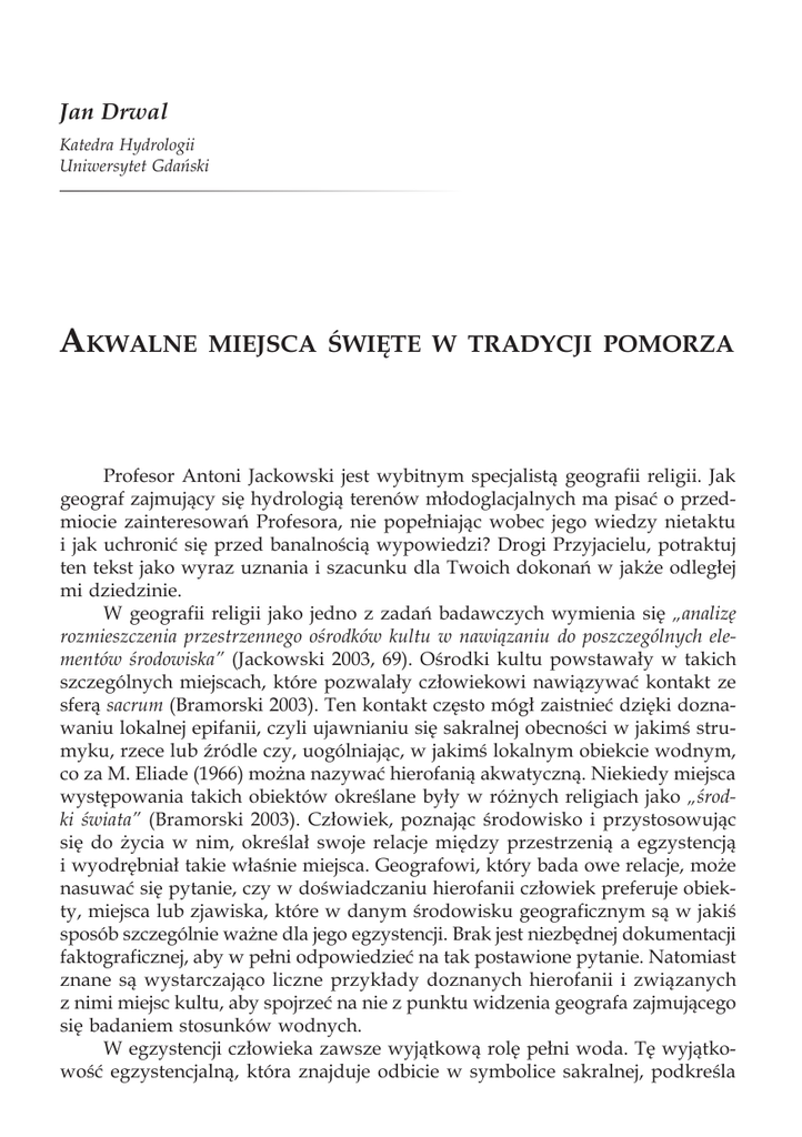 Jan Drwal AKWALNE MIEJSCA ŚWIĘTE W TRADYCJI POMORZA