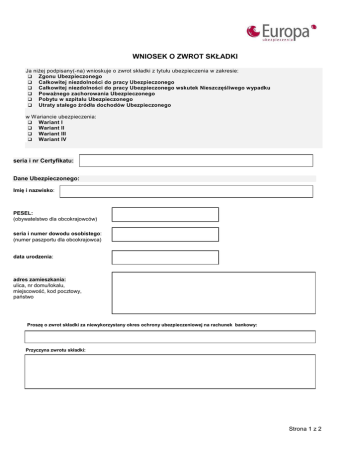 WNIOSEK O ZWROT SKŁADKI