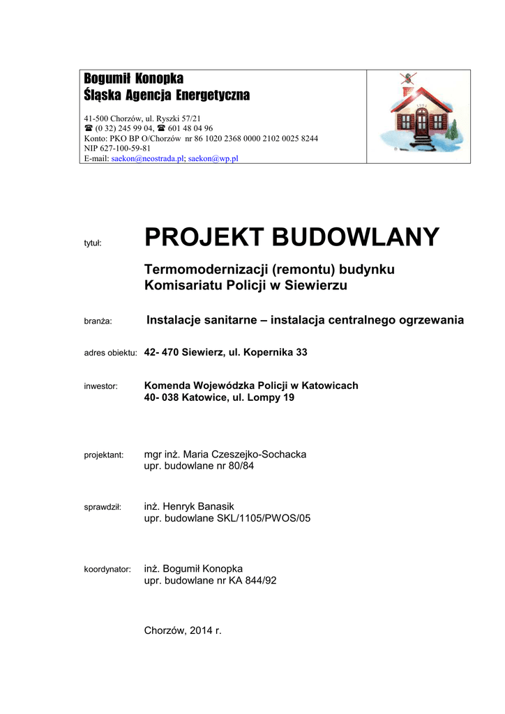 Projekt instalacje - Komenda Wojewódzka Policji w Katowicach