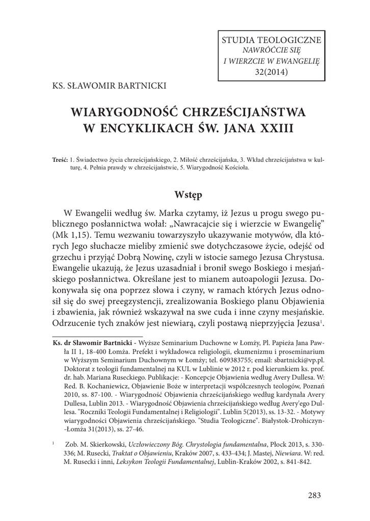 wiarygodność chrześcijaństwa w encyklikach św. jana xxiii