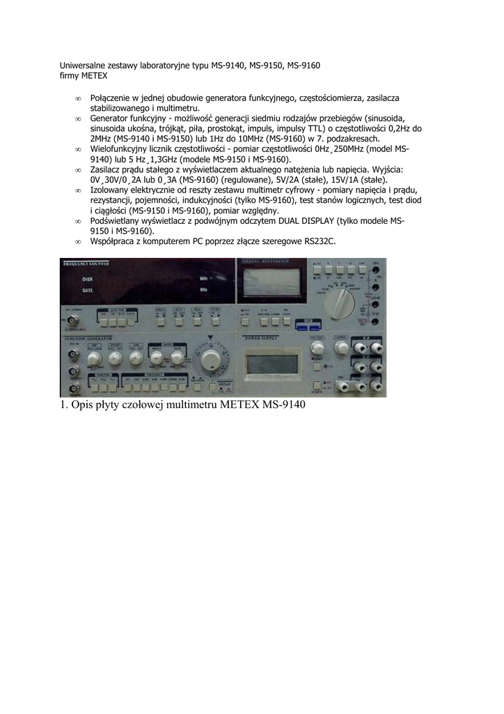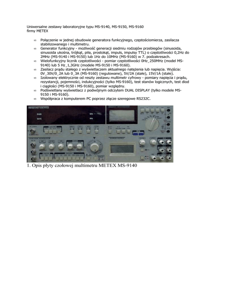 1. Opis płyty czołowej multimetru METEX MS-9140