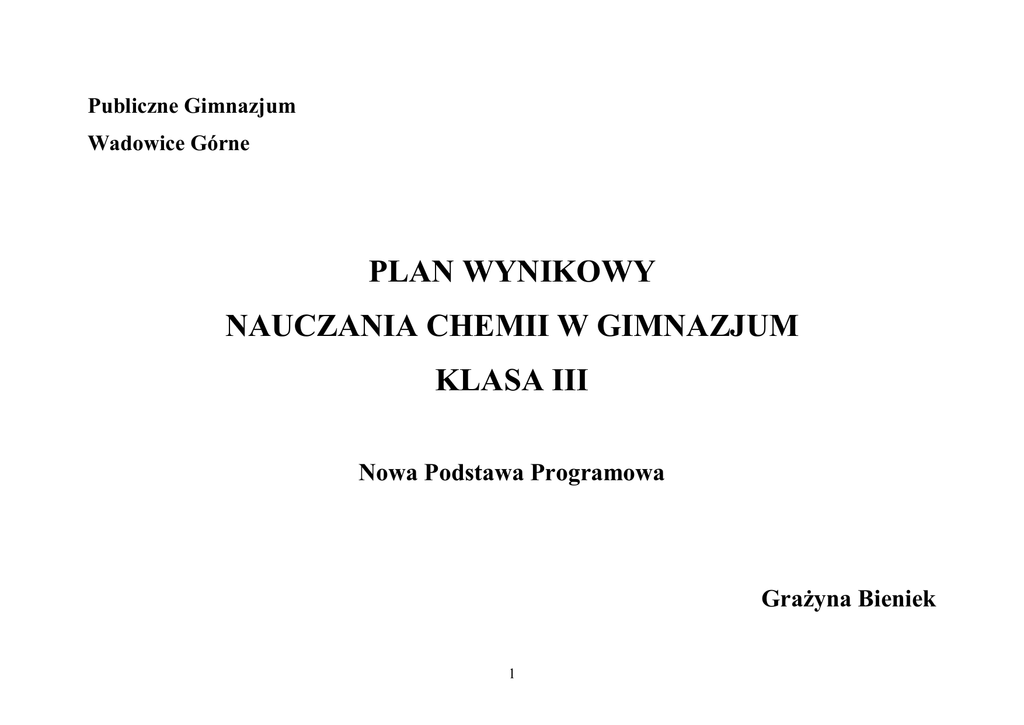 PLAN WYNIKOWY NAUCZANIA CHEMII W GIMNAZJUM KLASA III