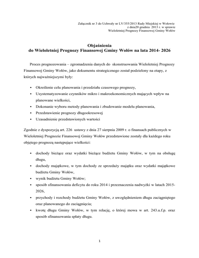 Objaśnienia do Wieloletniej Prognozy Finansowej Gminy Wołów na