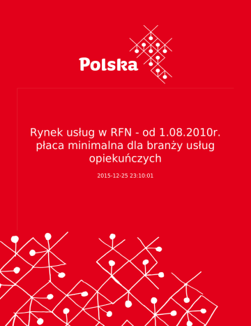 Rynek usług w RFN - od 1.08.2010r. płaca minimalna dla branży usług opiekuńczych 2015-12-25 23:10:01 2 Przyjęty w dniu 14 lipca przez rząd RFN projekt zarządzenia federalnego ministerstwa pracy i spraw socjalnych w sprawie płacy minimalnej w kolejnym segmencie niemieckiego rynku usług, wchodzi w życie w dniu 1 sierpnia br. Zarządzenie, którego zręby opracowała i pierwszy raz przedstawiła opinii publicznej w marcu br. tzw. komisja opiekuńcza (**), wprowadza minimalne stawki godzinowe wynagrodzenia (8,50 EUR w „starych" krajach związkowych; 7,50 EUR w „nowych" krajach związkowych) dla blisko 560 tysięcy opiekunów spośród ogólnej liczby 800 tysięcy zatrudnionych w branży. Przyjęty w dniu 14 lipca przez rząd RFN projekt zarządzenia federalnego ministerstwa pracy i spraw socjalnych w sprawie płacy minimalnej w kolejnym segmencie niemieckiego rynku usług, wchodzi w życie w dniu 1 sierpnia br. Zarządzenie, którego zręby opracowała i pierwszy raz przedstawiła opinii publicznej w marcu br. tzw. komisja opiekuńcza (**), wprowadza minimalne stawki godzinowe wynagrodzenia (8,50 EUR w „starych" krajach związkowych; 7,50 EUR w „nowych" krajach związkowych) dla blisko 560 tysięcy opiekunów spośród ogólnej liczby 800 tysięcy zatrudnionych w branży. Płaca minimalna dotyczy osób wykonujących usługi tzw. opieki podstawowej, tj. związanych z utrzymaniem czystości ciała, żywieniem, poruszaniem się osoby , nad którą sprawowana jest opieka. Regulacje omawianego zarządzenia nie obejmują działalności pomocy domowych, opiekunów osób cierpiących na demencją a także odbywających praktyki zawodowe w ramach nauki zawodu lub praktykantów - stażystów. Na blisko 2,25 mln szacuję się liczbę dorosłych w RFN, którzy zdani są na pomoc i opiekę ze strony członków rodziny, wyspecjalizowanych instytucji i firm. Projekcję rozwoju liczby osób z tego typu potrzebami przedstawia się niżej. Pochodzi ona z opublikowanej w marcu br. diagnozy opracowanej przez wspomnianą komisję opiekuńczą. Wśród ekspertów niemieckiego rynku usług wyraża się przekonanie, że wprowadzanie przez rząd niemiecki płacy minimalnej we wrażliwych na konkurencję obszarach usług, jest działaniem ochronnym przed decyzją o otwarciu - po zakończeniu okresów przejściowych - niemieckiego rynku pracy, co ma nastąpić w maju 2011 roku. Dziewięć branż, które objęte już zostały regulacjami płacy minimalnej oraz dalsze dwie branże czekające na decyzje rządowe w tym zakresie (działalność ochrony mienia i osób, dokształcanie zawodowe), zdają się wspomniane przypuszczenia potwierdzać. Wynagrodzenia minimalne w EUR wg ustawy o oddelegowaniu (Arbeitnehmer-Entsendegesetz - AentG) 3 „Stare" kraje związkowe KATEGORIA Gospodarka odpadami Pracownik niewykwalifikowany Budownictwo Górnictwo „Nowe" kraje związkowe 8,02 10,80* Pracownik wykwalifikowany 12,90 Najniższa płaca 11,17 Robotnik wykwalifikowany 12,41 9,25 Dekarstwo 10,60 Przemysł elektroniczny 9,60 8,20 8,40* 6,83 najniższa grupa płacowa 7,65 6,50* Firmy sprzątające Przemysł tekstylny 4 Malarstwo i lakiernictwo Pracownik niewykwalifikowany 9,50 Czeladnik 11,25 8,50 Opieka nad osobami starszymi lub chorymi 7,50 do 2013 płace wzrosną do 9 EUR i odpowiednio 8 EUR Branże, w których wprowadzenie wynagrodzeń minimalnych jest w dyskusji KATEGORIA „Stare" kraje związkowe „Nowe" kraje związkowe Dokształcanie zawodowe 7,60-12,28 7,60-10,93 Ochrona mienia i osób 6,53-8,60* * łącznie z Berlinem Źródła: Einigung der Pflegekommission auf einen Mindestlohn - informacja prasowa z dnia 25.03.2010 Informacja prasowa rządu RFN z dnia 14.07.2010 Berliner Morgenpost nr 190 z dnia 15. 07. 2010 r. Opracowanie: Joachim Thannhäuser/WPHI Berlin 5 (**) W skład komisji powołanej przez federalnego ministra pracy i spraw socjalnych weszło 8 osób przedstawicieli związków branżowych, samorządu terytorialnego, w rękach którego znajduje się większość niemieckich instytucji świadczących stacjonarne usługi opiekuńcze instytucji opiekuńczych , niemieckiego kościoła protestanckiego i katolickiego. 6