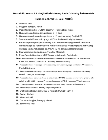Protokół z obrad 13. Sesji Młodzieżowej Rady Dzielnicy