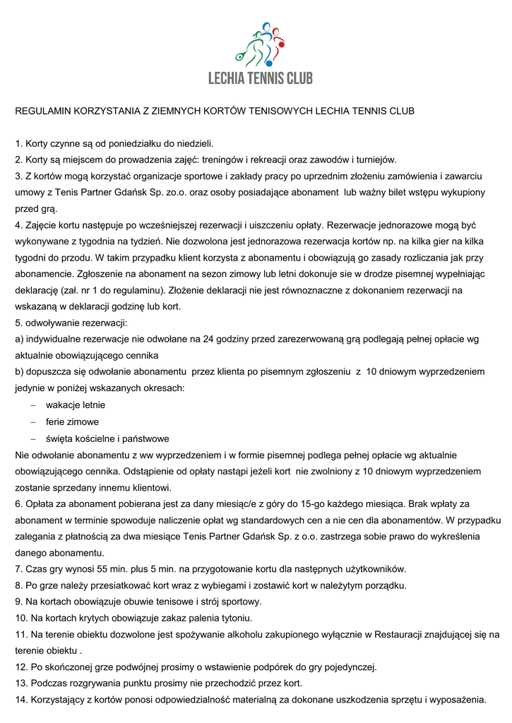 Regulamin do pobranie – Lechia Tennis Club – 2015