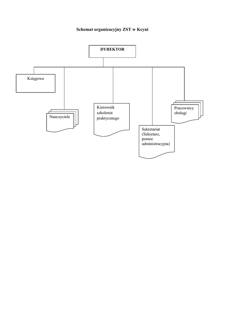 Schemat organizacyjny ZST w Kcyni DYREKTOR Księgowa Nauczyciele Kierownik szkolenia praktycznego Pracownicy obsługi Sekretariat (Sekretarz, pomoc administracyjna)