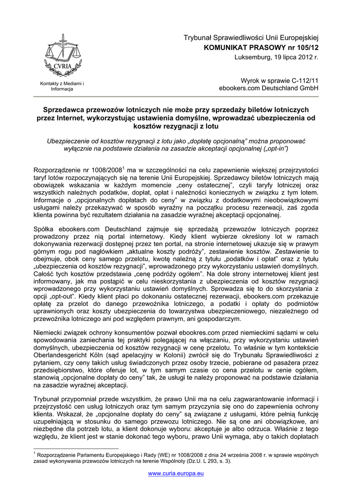 KOMUNIKAT PRASOWY nr 105/12 - curia