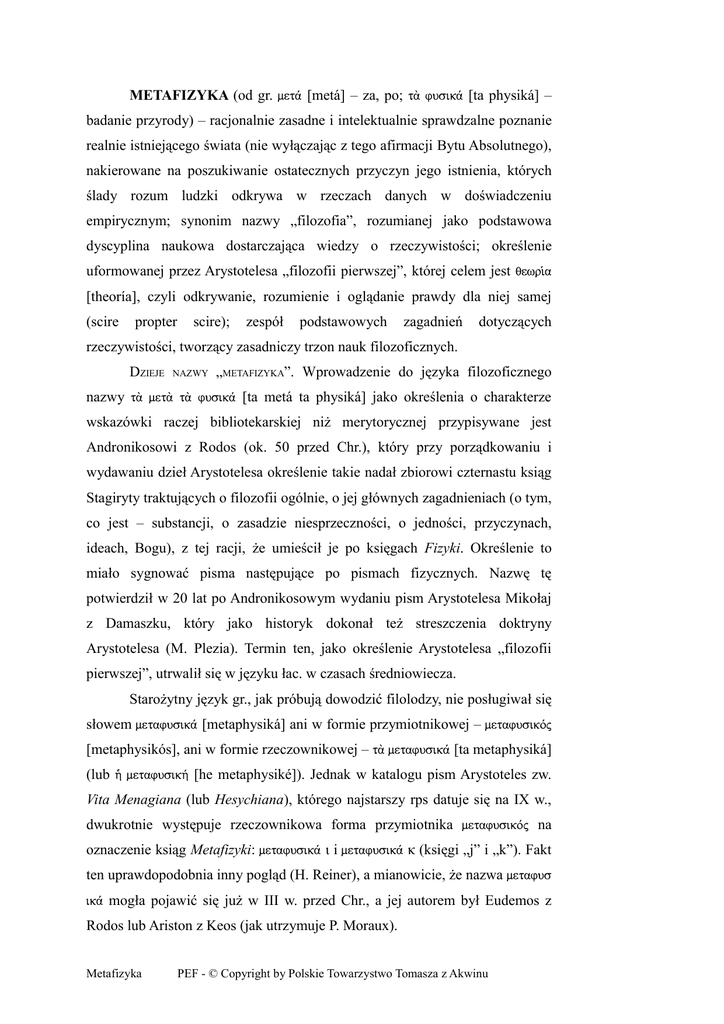 Metafizyka - Polskie Towarzystwo Tomasza z Akwinu