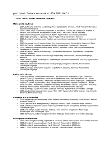 prof. dr hab. Barbara Kożusznik - LISTA PUBLIKACJI