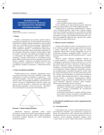 BAROMETR REGIONALNY WYKORZYSTANIE INFORMATYCZNYCH APLIKACJI DO ZARZ¥DZANIA PROJEKTEM I RYZYKIEM PROJEKTU Andrzej Salej Wy¿sza Szko³a Zarz¹dzania i Administracji 1. Wstêp Projekt, w odró¿nieniu od czynnoœci sta³ych wykonywanych przez organizacjê, nie jest zadaniem rutynowym. Wydzielenie jakiegoœ rodzaju dzia³alnoœci jako projektu wi¹¿e siê z uznaniem jej tymczasowego i niepowtarzalnego charakteru. Zarz¹dzanie projektem, jakkolwiek w wielu aspektach zbie¿ne z zarz¹dzaniem tradycyjnym, posiada swoj¹ specyfikê. Mimo ¿e projekty mog¹ mieæ ró¿ny charakter, z³o¿onoœæ i wielkoœæ, istniej¹ pewne ogólne zasady i wskazania, jak efektywnie koordynowaæ prace zmierzaj¹ce do osi¹gniêcia celów projektu. Jedn¹ z uznanych i szeroko stosowanych w zarz¹dzaniu projektami aplikacji informatycznych jest oprogramowanie MS Project, wygodne i skuteczne narzêdzie tworzenia harmonogramu prac projektowych, bud¿etowania, a tak¿e zarz¹dzania ryzykiem zwi¹zanym z wdra¿aniem projektu. 2. Istota zarz¹dzania projektem Projekt pojawia siê w strukturze organizacji zazwyczaj nie bez powodu. Pierwszym zadaniem osoby odpowiedzialnej za realizacjê projektu w organizacji – czyli mened¿era projektu – jest wiêc ustalenie szczegó³owego drzewa celów. W przypadku projektów realizowanych w ramach Inicjatywy Wspólnotowej EQUAL istotne jest, aby te cele nie powsta³y w oderwaniu od ostatecznych beneficjentów projektu, a wrêcz przeciwnie – aby aktywnie uczestniczyli oni w procesie ich formu³owania. 35 – zakresu projektu, – czasu projektu, – kosztu projektu (koniecznych zasobów). Te trzy aspekty s¹ ze sob¹ œciœle powi¹zane. Ilustracj¹ graficzn¹ tego problemu jest model trójk¹ta projektu Trójk¹t oznacza wzajemne wspó³zale¿noœci zakresu, czasu i bud¿etu projektu. Tylko jeden z boków trójk¹ta mo¿e byæ absolutnie priorytetowy, pozosta³e dwa dziêki swej elastycznoœci umo¿liwiaj¹ dostosowanie planu do wymogów trzeciego. W projektach finansowanych z funduszy europejskich trójk¹t ma dwa ograniczenia: ustalony bud¿et oraz datê zakoñczenia. 3. Obszary ryzyka w projekcie Istnieje wiele definicji ryzyka, mo¿na przyj¹æ ¿e ryzyko w realizacji projektu oznacza pojawienie siê sytuacji, w której zamierzone cele projektu mog¹ nie zostaæ osi¹gniête. Innymi s³owy sytuacji polegaj¹cej na tym, ¿e rzeczywiste dzia³ania, osi¹gniête efekty i terminy z jakichœ powodów ró¿ni¹ siê od tych planowanych i zamierzonych. Obszary ryzyka realizacji projektów zbie¿ne s¹ w wielu punktach z ryzykiem tradycyjnie rozumianej i dzia³aj¹cej organizacji. Mo¿na tu mówiæ m. in. o ryzyku systemowym, prawnym, rynkowym, finansowym, politycznym. Obszary ryzyka specyficzne dla projektów wynikaj¹ z ich tymczasowego i nierutynowego charakteru. W zale¿noœci od typu, wielkoœci, z³o¿onoœci, priorytetów projektu grupa czynników kreuj¹cych ryzyko mo¿e byæ mniej lub bardziej liczna. W toku planowania projektu “System przeciwdzia³aniu powstawania bezrobocia na terenach s³abo zurbanizowanych”, realizowanego w ramach tematu F Inicjatywy Wspólnotowej EQUAL szczególn¹ uwagê poœwiêcono zidentyfikowaniu mo¿liwych obszarów zagro¿eñ realizacji celów projektu. Wœród najwa¿niejszych mo¿na wymieniæ: – sceptyczne podejœcie coraz liczniejszej grupy potencjalnych beneficjentów programów finansowanych z funduszy europejskich do uczestnictwa w tych programach, – znalezienie optymalnych z punktu widzenia projektu zasobów, przede wszystkim wykwalifikowanej kadry przy za³o¿onym poziomie kosztów. 4. Zarz¹dzanie projektem przy u¿yciu oprogramowania MS Project 4.1. Faza planowania Rysunek 1: Model trójk¹ta projektu Jakkolwiek w³aœciwe okreœlenie celów czêsto przes¹dza o powodzeniu b¹dŸ niepowodzeniu projektu, jest to dopiero (lub a¿) po³owa sukcesu. Dalsze dzia³ania mened¿era projektu skupiaj¹ siê wokó³ pogodzenia trzech priorytetów: Z pewnoœci¹ tym, co ³¹czy wiele zakoñczonych niepowodzeniem projektów jest niew³aœciwie przeprowadzona faza planowania. Jeœli za³o¿ony plan dzia³añ jest tak skonstruowany, ¿e nie wytrzyma zderzenia z rzeczywistoœci¹, nawet najlepszy mened¿er projektu wróci z placu boju na tarczy. Zatem kluczowym czynnikiem 36 Nr 5 - 2006 Rysunek 2: Przyk³adowy ekran wykresu Gantta w programie MS Project sukcesu eliminuj¹cym lub minimalizuj¹cym ryzyko w projekcie jest dobrze zrobiony plan. Planowanie z³o¿onych projektów z du¿ymi bud¿etami nastrêcza wielu problemów. Narzêdziem pozwalaj¹cym rozwi¹zaæ wiele z nich jest oprogramowanie MS Project. Jakkolwiek wiêkszoœæ mened¿erów projektu koñczy swoj¹ przygodê z t¹ aplikacj¹ na etapie wizualizacji harmonogramu projektu przy u¿yciu wykresu Gantta (rys. 2) to trzeba powiedzieæ, ¿e mo¿liwoœci tego narzêdzia s¹ o wiele wiêksze. Oczywiœcie punktem wyjœcia jest ogólny plan dzia³añ, wynikaj¹cy z drzewa celów projektu. Stworzenie wykresu Gantta oznacza narzucenie planowi ram czasowych. Nastêpnym krokiem jest przydzielenie zasobów do dzia³añ i powi¹zanie zasobów z kosztami ich wykorzystania, powstaje zatem szczegó³owy bud¿et projektu. Ostatnim etapem fazy planowania projektu jest jego optymalizacja – MS Project skraca czas realizacji projektu metod¹ œcie¿ki krytycznej (CPM). Dobrze sporz¹dzony w MS Project plan staje siê teraz skuteczn¹ broni¹ w rêku mened¿era projektu. Program umo¿liwia wiele sposobów wizualizacji, sortowañ, tworzenia niestandardowych raportów z mo¿liwoœci¹ dopa- sowania do potrzeb u¿ytkownika. Wymusza znaczny poziom szczegó³owoœci planu, dziêki temu jest on bli¿szy rzeczywistoœci. 4.2. Ryzyko projektu a wykorzystanie MS Project Wykorzystanie specjalistycznego oprogramowania do zarz¹dzania projektem niesie ze sob¹ co najmniej dwie zasadnicze korzyœci: – plan opracowany przy wsparciu informatycznej aplikacji bêdzie bardziej realny i dziêki temu mniej ryzykowny 