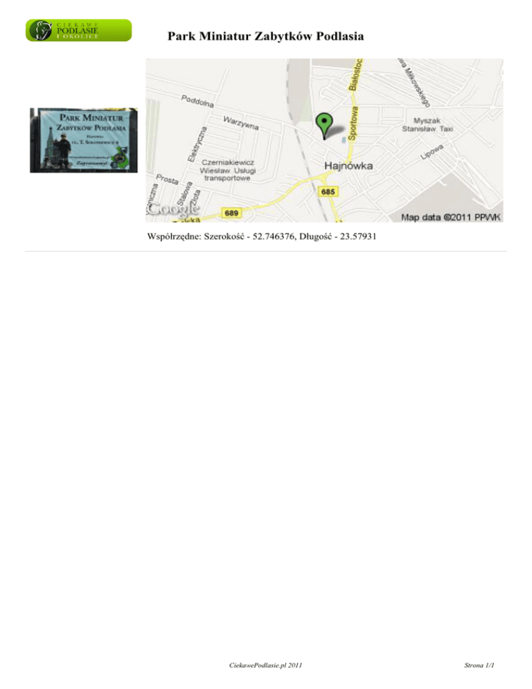 Park Miniatur Zabytków Podlasia Współrzędne: Szerokość - 52.746376, Długość - 23.57931 CiekawePodlasie.pl 2011 Strona 1/1