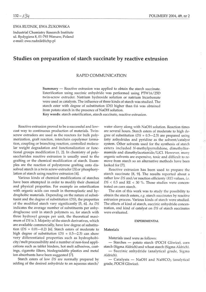 studies on Pl€paration o{ stalch succinate by reactive extusion
