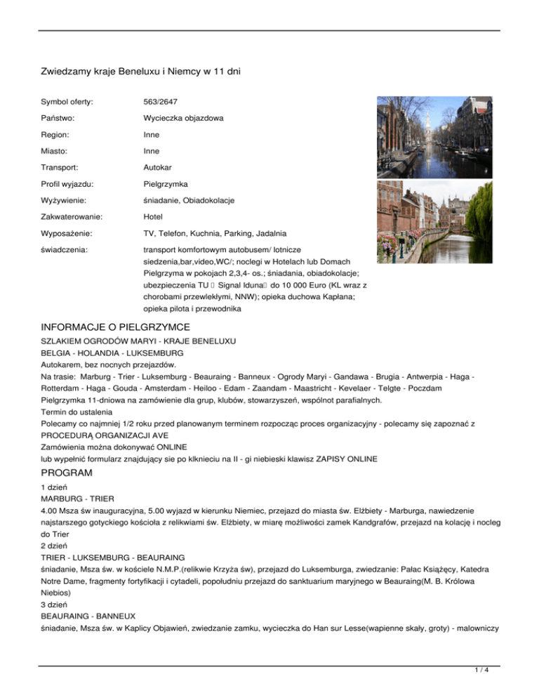 SZLAKIEM OGRODÓW MARYI - KRAJE BENELUXU