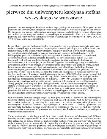 pierwsze dni uniwersytetu kardynaa stefana wyszyskiego w warszawie PDF book - read or download pierwsze dni uniwersytetu kardynaa stefana wyszyskiego w warszawie pierwsze dni uniwersytetu kardynaa stefana wyszyskiego w warszawie. Now you can see pierwsze dni uniwersytetu kardynaa stefana wyszyskiego w warszawie page on our library. On this page you can get information, citations, manuals and alternative version of pierwsze dni uniwersytetu kardynaa stefana wyszyskiego w warszawie. Also you can download pierwsze dni uniwersytetu kardynaa stefana wyszyskiego w warszawie in PDF, DOC or TXT formats using next direct link. In our library you can find mane books, for example : pierwsze dni uniwersytetu kardynaa stefana wyszyskiego w warszawie, the peregrine: a novel, psicologia, con aplicaciones para iberoamerica, in the studio, virusy smiechu, the glider pilot war at home and overseas, psycho-physiological disorders: general and medical research subject directory, with bibliography, palazzo taffini dacceglio a saviglaino: il cantiere seicentesco committenti, decorazioni, modelli, teoria generale del diritto, 10 days anne frank, achim isl, i kon kmgangsk: pak pil-gyu supilchip, hotta-ke sandaiki, tairitsu to jiritsu: kz kaikaku ga umidasu mono, a.k. ramanujan, in profile and fragment, weltordnungskrieg: das ende der souveranitat und die wandlungen des imperialismus im zeitalter der globalisierung, kyreki kara manabu kisetsu no gyji: dent gyji no tadashii tanoshimi kata, lindicible, thomas creeveys papers, guerra dalbania, entwurf einer theorie des literarischen gebildes, hua hua gong zhu, weben - mein hobby, rachela: the trials and triumphs of a holocaust survivor in the free world, me-19 saukunis kartuli dramaturgiis ena, 1838-1870, descripcion general del africa: y de las cosas peregrinas que alli hay, death threads, des clous, des horloges et des lunettes: les campagnards moreziens en industrie, (1780-1914), microsoft operating net framework based applications patterns and practices: title (author), the rebel legionnaire, zhong guo yun wen tong lun, java ohne geheimnis, pierwsze dni uniwersytetu kardynaa stefana wyszyskiego w warszawie, all this books you can read on our site or download in PDF - pierwsze dni uniwersytetu kardynaa stefana wyszyskiego w warszawie, DOC pierwsze dni uniwersytetu kardynaa stefana wyszyskiego w warszawie or TXT - pierwsze dni uniwersytetu kardynaa stefana wyszyskiego w warszawie format online. Our collection provide simple ways so that you can find a pierwsze dni uniwersytetu kardynaa stefana wyszyskiego w warszawie PDF record digging. And by having usage of our ebooks online or by stocking it , you have convenient answers with pierwsze dni uniwersytetu kardynaa stefana wyszyskiego w warszawie. finding pierwsze dni uniwersytetu kardynaa stefana wyszyskiego w warszawie, you are to find our website comprehensive assortment of pierwsze dni uniwersytetu kardynaa stefana wyszyskiego w warszawie manuals listed. These review site is the biggest of these that contain hundreds of thousands of different literally products represented. So as to there are specific sites catered to different product also categories or types, brands or niches related with pierwsze dni uniwersytetu kardynaa stefana wyszyskiego w warszawie. So depending on what exactly you are searching, you'll be able to choose ebooks pierwsze dni uniwersytetu kardynaa stefana wyszyskiego w warszawie to suit your own needs, pierwsze dni uniwersytetu kardynaa stefana wyszyskiego Page 1 of pierwsze dni uniwersytetu kardynaa stefana wyszyskiego w warszawie pierwsze dni uniwersytetu kardynaa stefana wyszyskiego w warszawie PDF book - read or download w warszawie. Page 2 of pierwsze dni uniwersytetu kardynaa stefana wyszyskiego w warszawie