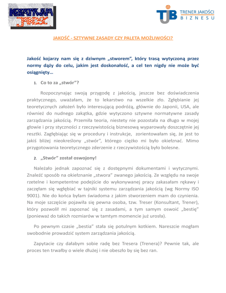 JAKOŚĆ - SZTYWNE ZASADY CZY PALETA MOŻLIWOŚCI? Jakość