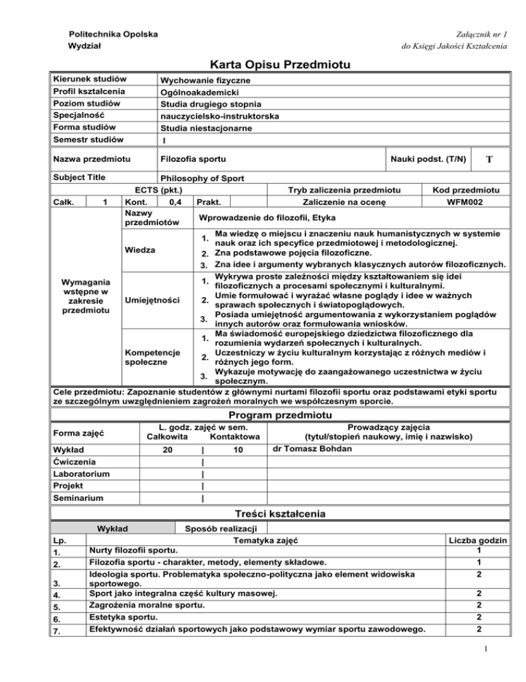 Filozofia sportu - Politechnika Opolska