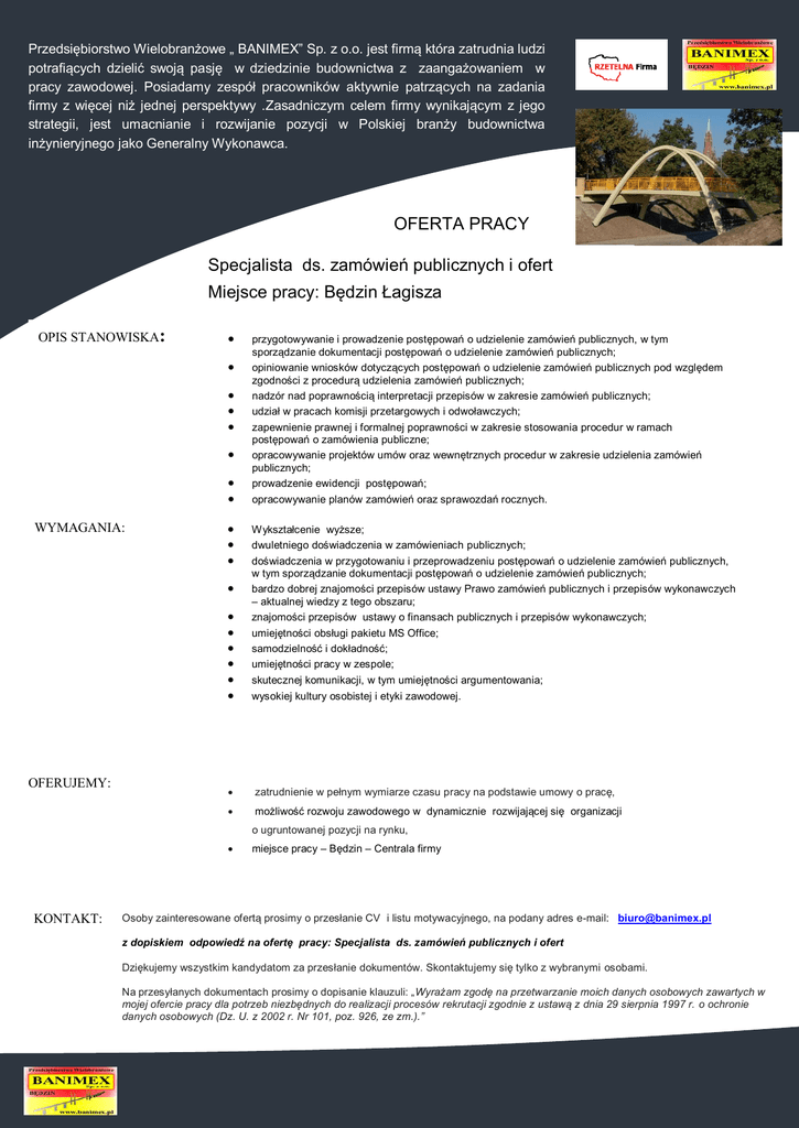 OFERTA PRACY Specjalista ds. zamówień publicznych i