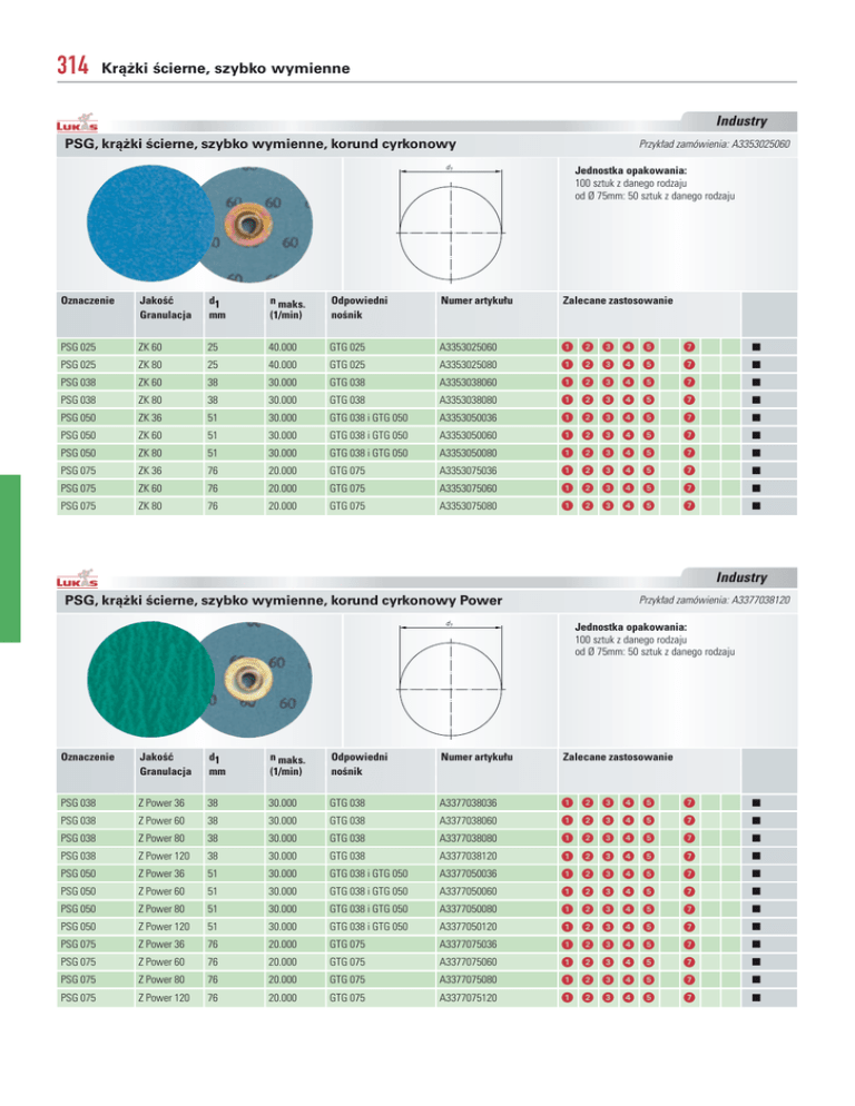 Industry PSG, krążki ścierne, szybko wymienne - LUKAS