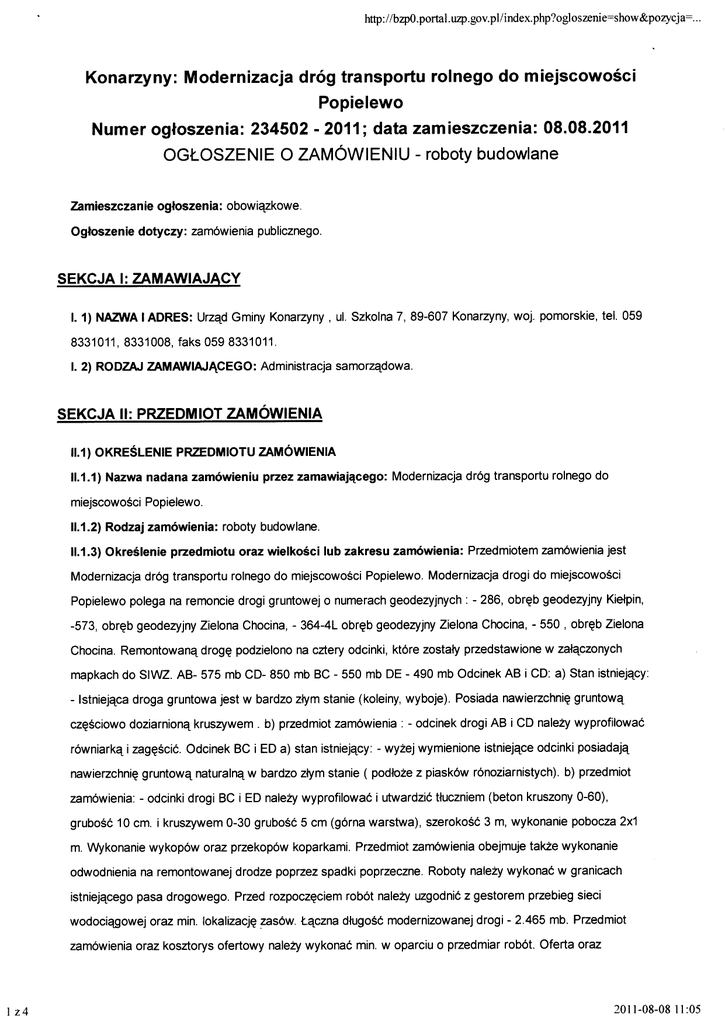 Numer ogloszenia:234502- 2011;data zamieszczenia:08.08.2011