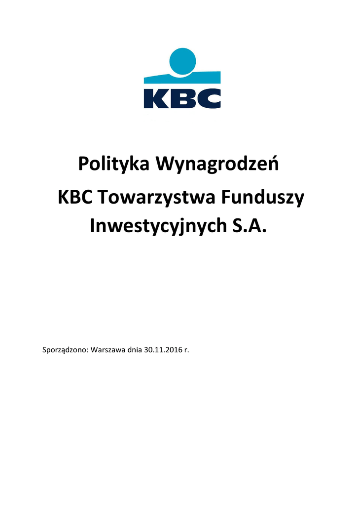 Polityka Wynagrodzeń KBC Towarzystwa Funduszy Inwestycyjnych