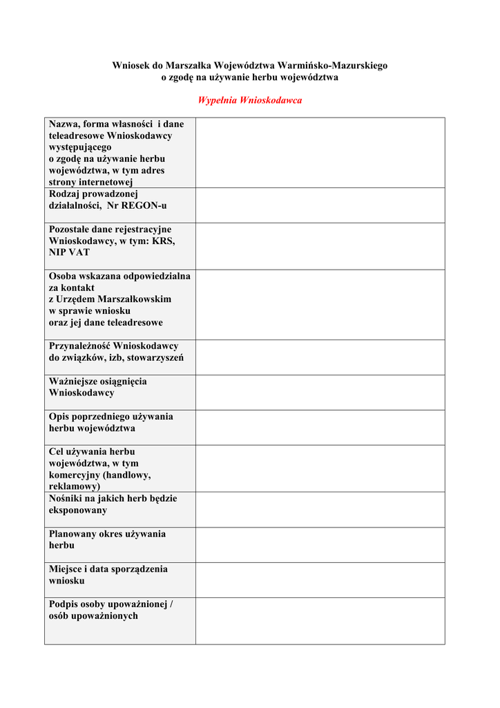 Wniosek o używanie herbu - Urząd Marszałkowski Województwa
