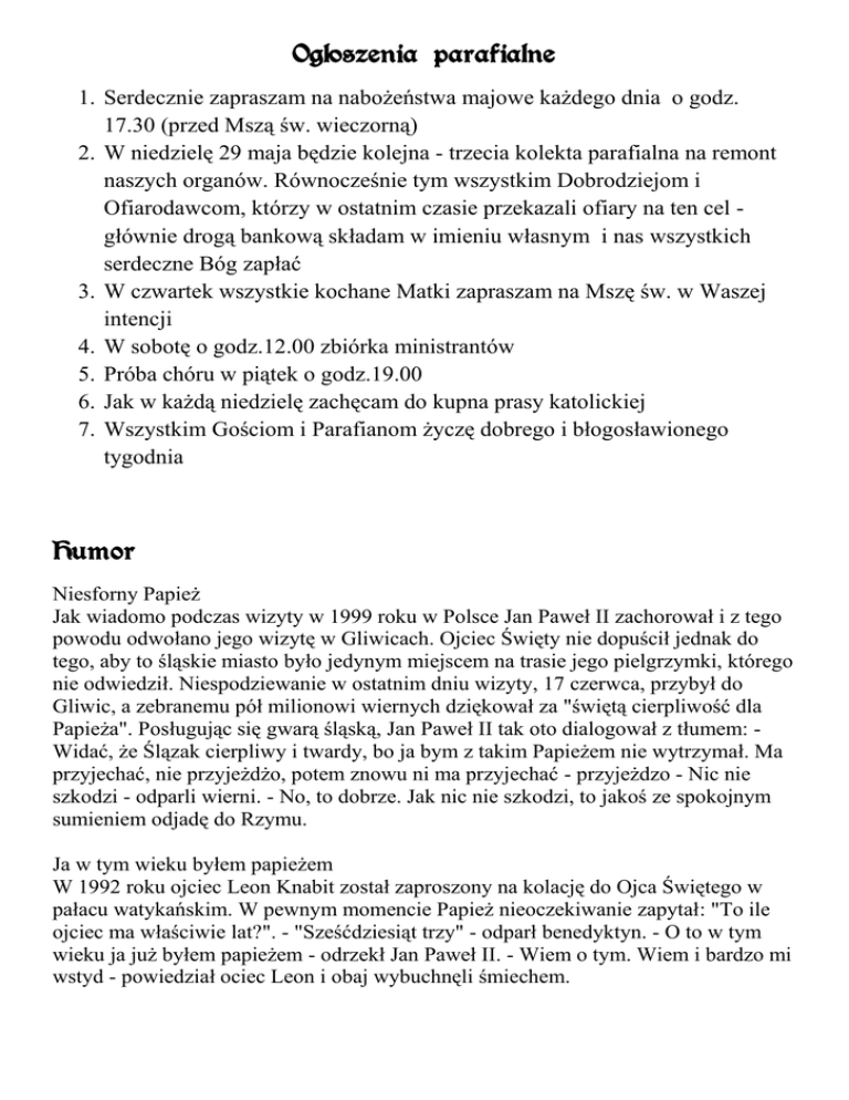 Ogłoszenia parafialne Humor