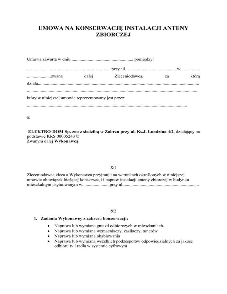 umowa na konserwację instalacji anteny zbiorczej - Elektro-Dom