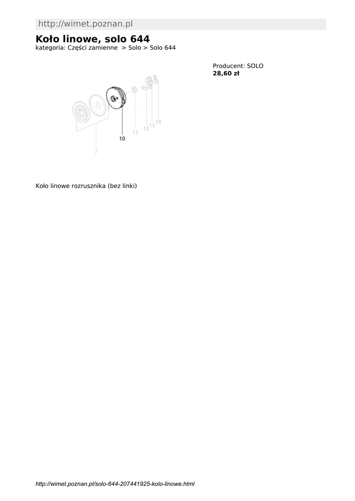 http://wimet.poznan.pl Koło linowe, solo 644 kategoria: Części zamienne > Solo > Solo 644 Producent: SOLO 28,60 zł Koło linowe rozrusznika (bez linki) http://wimet.poznan.pl/solo-644-207441925-kolo-linowe.html