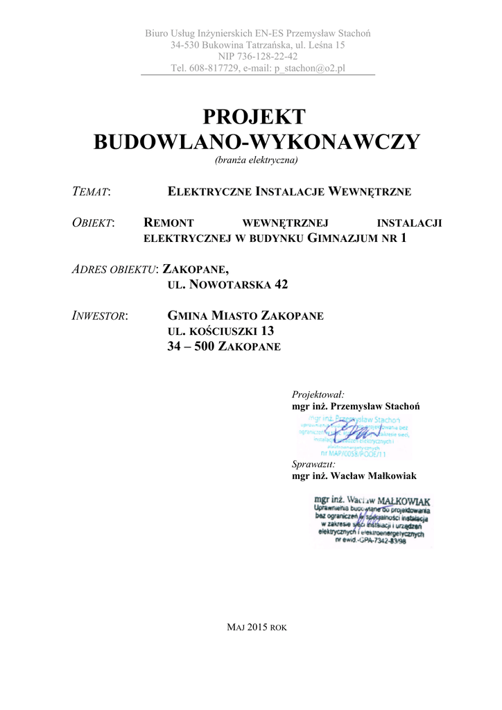 projekt budowlano-wykonawczy - Gimnazjum nr 1 im. O. i A