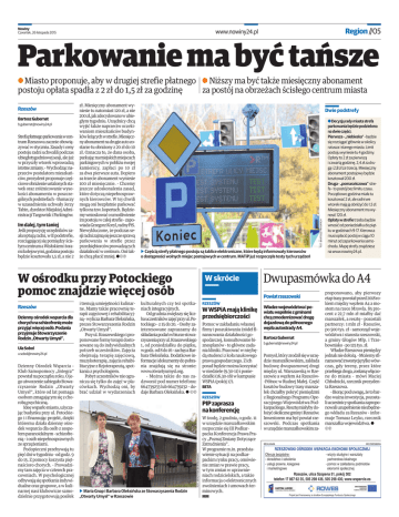 Nowiny Czwartek, 26 listopada 2015 Region //05 www.nowiny24.pl Parkowanie ma być tańsze A Miasto proponuje, aby w drugiej strefie płatnego A Niższy ma być także miesięczny abonament postoju opłata spadła z 2 zł do 1,5 zł za godzinę Bartosz Gubernat [email protected] Strefa płatnego parkowania w centrum Rzeszowa zacznie obowiązywać w styczniu. Zasady i ceny postoju radni uchwalili podczas ubiegłotygodniowej sesji, ale już w przyszły wtorek wprowadzą istotne zmiany. - Wychodząc naprzeciw postulatom mieszkańców, prezydent proponuje częściowe obniżenie ustalonych stawek oraz zróżnicowanie wysokości abonamentu w poszczególnych podstrefach - tłumaczy w uzasadnieniu uchwały Jerzy Tabin, dyrektor Miejskiej Administracji Targowisk i Parkingów. Im dalej, tym taniej Jeśli propozycję urzędników zaakceptują radni, w II podstrefie, rozciągającej się pomiędzy ścisłym centrum a Wisłokiem i torami kolejowymi, godzina postoju będzie kosztowała 1,5 zł, a nie 2 zł. Miesięczny abonament wyniesie tu natomiast 120 zł, a nie 200 zł, jak zdecydowano w ubiegłym tygodniu. Urzędnicy chcą wyjść także naprzeciw oczekiwaniom mieszkańców budynków leżących w strefie. Miesięczny abonament na drugie auto zostanie tu obniżony z 20 zł do 10 zł. Oznacza to, że dana osoba, parkując na miejskich miejscach parkingowych w pobliżu swojej kamienicy, zapłaci po 10 zł za dwa pierwsze auta. Dopiero za trzecie abonament wyniesie 100 zł miesięcznie. - Chcemy jeszcze udoskonalenia zasad, które dotyczą niepełnosprawnych kierowców. W tej chwili mogą oni bezpłatnie parkować tylko na tzw. kopertach. Będziemy wnioskować o umożliwienie im postoju w całej strefie - zapowiada Grzegorz Koryl, radny PiS. Niewykluczone, że podczas sesji radni zajmą się jeszcze sprawą parkowania w strefie przez przedsiębiorców prowadzących działalność w centrum. Oni także chcą płacić mniej. a ¹ Dwie podstrefy FOT. BARTOSZ FRYDRYCH Rzeszów za postój na obrzeżach ścisłego centrum miasta b Częścią strefy płatnego postoju są tablice elektroniczne, które będą informowały kierowców o dostępności wolnych miejsc postojowych w centrum. MATiP już rozpoczęła testy tych urządzeń W ośrodku przy Potockiego pomoc znajdzie więcej osób Dzienny ośrodek wsparcia dla chorych na schizofrenię może przyjąć więcej osób. Podania przyjmuje Stowarzyszenie Rodzin „Otwarty Umysł”. Ula Sobol [email protected] Dzienny Ośrodek Wsparcia Klub Samopomocy „Integra” powstał na początku roku. O jego utworzenie zabiegało Stowarzyszenie Rodzin „Otwarty Umysł”, które od lat pomaga osobom zmagającym się z chorobą psychiczną. Ideę wsparło miasto, użyczając budynku przy ul. Potockiego 1 i finansując projekt, dzięki któremu działa dzienny ośrodek wsparcia dla osób z zespołem paranoidalnym - schizofrenią - i osób niepełnosprawnych ze sprzężeniami. Podopieczni przebywają tu pięć dni w tygodniu - od godz. 9 do 15. Z pomocy korzysta piętnaścioro chorych. - Prowadzimy tam zajęcia w czterech pracowniach. W psychologicznej odbywają się spotkania indywidualne oraz grupowe, a w kulinarnej nasi klubowicze samodzielnie przygotowują posiłek i trenują umiejętności kulinarne. Mamy także pracownię terapii zajęciowej i rehabilitacyjną - wylicza Barbara Oleksińska, prezes Stowarzyszenia Rodzin „Otwarty Umysł”. Przy ul. Kraszewskiego 1 proponowane formy terapii dostosowane są do indywidualnych potrzeb uczestników. Zajęcia obejmują: terapię zajęciową, muzykoterapię, zajęcia rehabilitacyjne z fizjoterapeutą, spotkania z psychologiem. Pobyt uczestników nie ogranicza się tylko do zajęć w placówkach. Wychodzą oni, by brać udział w wydarzeniach kulturalnych czy też spotkaniach integracyjnych. Od grudnia zwiększy się liczba uczestników zajęć przy ul. Potockiego - z 15 do 20. - Osoby zainteresowane zapraszamy do składania podań w biurze stowarzyszenia przy ul. Kraszewskiego 1, od poniedziałku do piątku, w godz. od 8 do 16 - zachęca Barbara Oleksińska. Dodatkowe informacje i dokumenty do pobrania znajdują się na stronie: www.otwartyumysl.org. - Można także do nas zadzwonić pod numer telefonu: 664739233 lub 664739232 - dodaje Barbara Oleksińska. a ¹ RZESZÓW W WSPiA mają klinikę przedsiębiorczości Pomoc w zakładaniu własnej firmy i poszukiwaniu źródeł finansowania działalności gospodarczej, konsultowanie biznesplanów - to główne zadania kliniki. Pracować w niej będą studenci z koła naukowego prawa gospodarczego. Z ich porad będzie można korzystać w niedziele (9.30-11) i poniedziałki (16.30-18) w kampusie WSPiA (pokój 17). BETA RZESZÓW PIP zaprasza na konferencję b Maria Gnap i Barbara Oleksińska ze Stowarzyszenia Rodzin „Otwarty Umysł” w Rzeszowie Dwupasmówka do A4 Powiat rzeszowski FOT. KRYSTYNA BARANOWSKA Rzeszów W skrócie W środę, 2 grudnia, o godz. 11 w urzędzie marszałkowskim rozpocznie się III Podkarpacka Konferencja Prawa Pracy „Poznaj Zmiany Dotyczące Zatrudnienia”. W programie m.in. przedstawienie sytuacji na podkarpackim rynku pracy, omówienie zmian w prawie pracy, w tym zmian w uprawnieniach rodzicielskich, a także informacja o elektronicznych zwolnieniach i umowach terminowych. MM A Decyzją rady miasta strefa parkowania będzie podzielona na dwie części. Pierwsza - „niebieska” - będzie się rozciągać głównie w okolicy ratusza i starego miasta. Limit postoju wyniesie tu 4 godziny. Opłaty to 2 zł za pierwszą i czwartą godzinę, 2,4 zł za drugą i 2,8 zł za trzecią. Miesięczny abonament postojowy będzie kosztował 200 zł. Druga - „pomarańczowa” strefa - to postój bez limitu czasu. Początkowo godzina miała tu kosztować 2 zł, ale radni we wtorek mają ją obniżyć do 1,5 zł. Miesięczny abonament ma wynosić 120 zł. Opłaty w strefie trzeba będzie wnosić od poniedziałku do piątku w godzinach 9-17. Kierowca musi opłacić