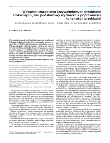 Ryszard Kuryjański: Wskaźniki zazębienia krzywoliniowych