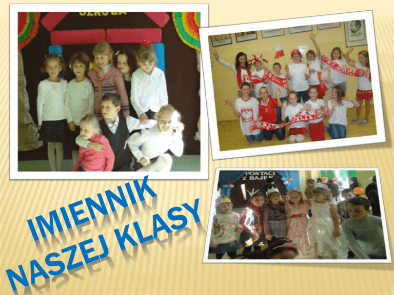 Jak masz na imię? Mam na imię (Anna). Jak się nazywasz? Nazywam się (Jan Kowalski). Kim jesteś? Jestem (chłopcem/Polakiem). ALEKSANDRA- MIŁA, SYMPATYCZNA, ZAWSZE POMOCNA, GOTOWA DO DZIAŁANIA. Zdrobnienia: Ola, Oleńka, Olesia, Olusia , Olunia. Zgrubienia: Olka, Oluśka. Arkadiusz – śmieszny, szalony, miły i pomocny. Potrafi rozbawić do łez. Zdrobnienia: Arek, Aruś, Arunio , Areczek , Arcik, Arczi . Zgrubienia: Arosław. Dominik – zabawny, szalony, umie rozbawić do łez. Zdrobnienia: Domiś , Dominiczek , Domik , Domcik , Doniu. Zgrubienia: Domisław. Kacper – miły, pomocny, zabawny, szalony. Zdrobnienia: Kacperek, Kacperos, Kacpri, Kapcio . Zgrubienia: Kacperzysko. Katarzyna: spontaniczna, pomocna, przyjazna . Zdrobnienia: Kasia, Kasiulinka, Kasiuńka, Kasieńka. Zgrubienia: Kacha, Kachna . Klaudia – miła, pomocna, świetna w rysowaniu, szalona. Zdrobnienia: Dusia, Klaudusia. Zgrubienia: Klauduśka , Klauducha. Małgorzata – sympatyczna, pomocna, zawsze uśmiechnięta, szalona . Zdrobnienia: Małgosia, Gosia, Małgosieńka, Małgorzatka. Zgrubienia: Małgocha ,Małgo, Gocha, Gośka. Małgosiunia, Martyna – miła, pomocna, szalona, zawsze uśmiechnięta. Zdrobnienia: Martynka, Martysia, Tysia , Martusia, Tusia, Martyś. Zgrubienia: Tyśka , Martynisko. Paulina – miła, sympatyczna, wulkan energii, szalona, pomocna. Zdrobnienia: Paulinka, Paulisia, Paulincia, Pauliś, Paula. Zgrubienia: Paulinisko, Paluśka. Wiktoria – miła, pomocna, zawsze uśmiechnięta. Zdrobnienia: Wiki, Wika, Wiktorynka, Wikulka. Zgrubienia: Wiktorysko, Wikuśka, Wikucha. DZIĘKUJEMY ZA UWAGĘ.