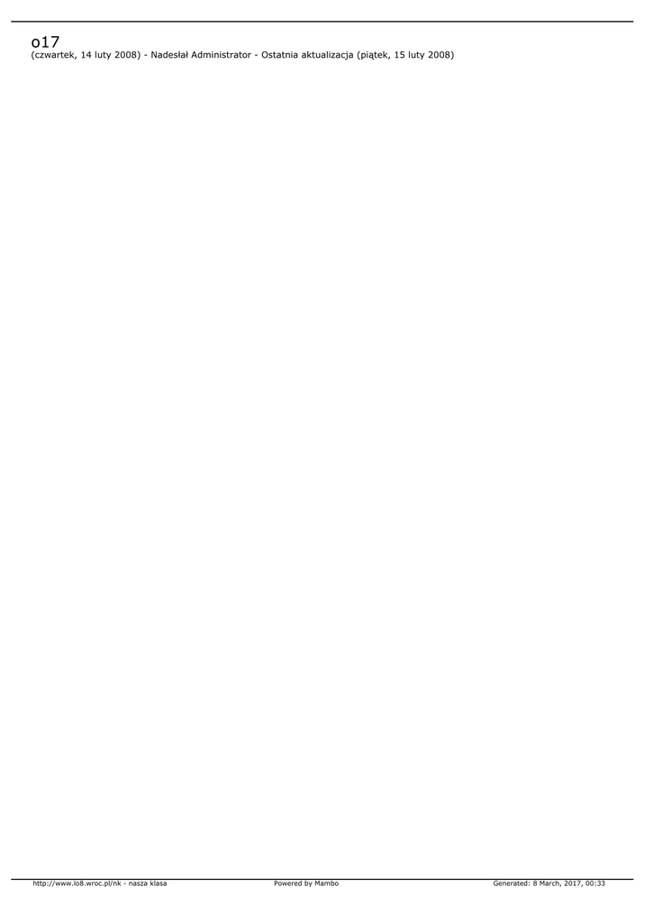 o17 (czwartek, 14 luty 2008) - Nadesłał Administrator - Ostatnia aktualizacja (piątek, 15 luty 2008) http://www.lo8.wroc.pl/nk - nasza klasa Powered by Mambo Generated: 8 March, 2017, 00:33