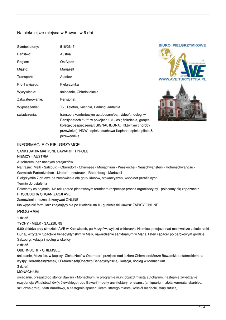 Na trasie: Melk - Salzburg - Oberndorf - Chiemsee - Monachium - Wieskirche - Neuschwanstein - Hohenschwangau Garmisch-Partenkirchen - Lindorf - Innsbruck - Rattenberg - Mariazell