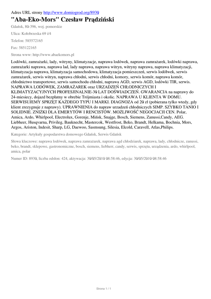 "Aba-Eko-Mors" Czeslaw Pradzinski, Gdansk, Kolobrzeska 69 i/4