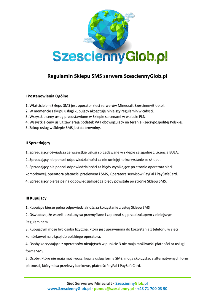 Regulamin Sklepu SMS serwera SzesciennyGlob.pl