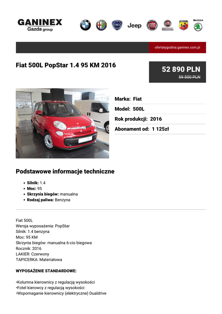 Fiat 500L PopStar 1.4 95 KM 2016 - Ganinex