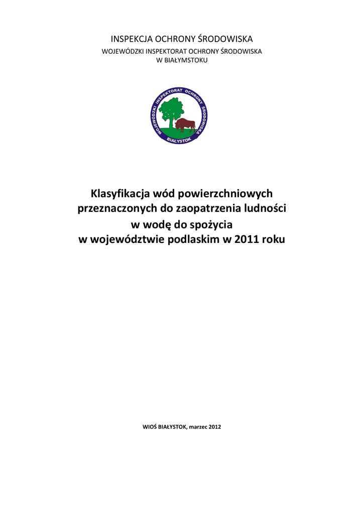 INSPEKCJA OCHRONY ŚRODOWISKA WOJEWÓDZKI INSPEKTORAT OCHRONY ŚRODOWISKA W BIAŁYMSTOKU Klasyfikacja wód powierzchniowych przeznaczonych do zaopatrzenia ludności w wodę do spożycia w województwie podlaskim w 2011 roku WIOŚ BIAŁYSTOK, marzec 2012 Opracowanie wykonano na podstawie wyników badań Państwowego Monitoringu Środowiska. W przypadku cytowania niniejszej publikacji należy podać źródło informacji. 2 Klasyfikacja wód powierzchniowych przeznaczonych do zaopatrzenia ludności w wodę do spożycia Podstawę klasyfikacji stanowi Rozporządzenie Ministra Środowiska z dnia 27 listopada 2002 r. w sprawie wymagań, jakim powinny odpowiadać wody powierzchniowe wykorzystywane do zaopatrzenia ludności w wodę przeznaczoną do spożycia (Dz. U. Nr 204 poz. 1728). Na potrzeby oceny wyznaczono 3 kategorie jakości wód, zależne od sposobu uzdatniania i dla każdej określono kryteria, jakie powinna spełniać: kategoria A1 – woda wymagająca prostego uzdatniania fizycznego, w szczególności filtracji oraz dezynfekcji, kategoria A2 – woda wymagająca typowego uzdatniania fizycznego i chemicznego, w szczególności utleniania wstępnego, koagulacji, flokulacji, dekantacji, filtracji i dezynfekcji (chlorowania końcowego), kategoria A3 – woda wymagająca wysokosprawnego uzdatniania fizycznego i chemicznego, w szczególności utleniania wstępnego, koagulacji, flokulacji, dekantacji, filtracji i adsorpcji na węglu aktywnym i dezynfekcji (ozonowania, chlorowania końcowego). Na terenie województwa podlaskiego funkcjonuje jedno ujęcie powierzchniowe wód płynących, zlokalizowane na rzece Supraśl w Wasilkowie, zaopatrujące w wodę aglomerację białostocką. Część zlewni Supraśli stanowi obszar strefy ochronnej ujęcia. Na potrzeby niniejszej oceny w 2011 roku przeprowadzono w ramach realizacji Programu Monitoringu Środowiska województwa podlaskiego, badania jakości wód Supraśli w przekroju pomiarowo-kontrolnym w Nowodworcach. Wyniki badań wykazały, iż nastąpiło pogorszenie jakości wody powierzchniowej w stosunku do oceny z 2010 roku. Woda nie spełniała wymagań jakościowych kategorii A3 (woda wymagająca wysokosprawnego uzdatniania fizycznego i chemicznego, w szczególności utleniania, koagulacji, flokulacji, dekantacji, filtracji, adsorpcji na węglu aktywnym, dezynfekcji). Przyczyną klasyfikacji są przekroczone wartości wskaźników ChZTcr oraz ogólnego węgla organicznego. Wysokie stężenia tych substancji można wiązać z obecnością znacznej ilości materii organicznej w wodzie. Jej źródłem jest podłoże bagienno-torfowe zlewni Supraśli w rejonie Michałowo-Gródek, z którego wymywane są duże ilości materii organicznej, w tym związków humusowych. Szczegółową ocenę przedstawiono poniżej. Opracowanie: Wydział Monitoringu Środowiska Akceptował: 3 Wyniki badań i ocena jakości wód rzeki Supraśl w przekroju pomiarowym Nowodworce Parametr Odczyn (pH) Barwa Zawiesiny ogólne Temperatura wody Przewodność elektrolityczna 7,9 102 <5 21-022011 7,9 49 10 21-032011 8,0 73 11 °C 0,2 0,2 µS/cm 332 Jednostka 24-01-2011 mg Pt/l mg/l 7,9 130 26 23-052011 8,0 7,3 19 15-062011 8,2 57 6,8 3,1 6,9 18,1 392 371 341 13-04-2011 7,8 145 <5 22-082011 7,7 114 <5 19-092011 8,1 42 <5 18,7 21,7 18,1 373 386 388 18-07-2011 8,0 40 <5 21-112011 8,0 31 8,8 12-122011 8,0 56 18 13,4 4,4 4,2 2,2 356 396 395 400 393 17-10-2011 2 2 2 2 3 2 2 2 2 2 2 2 Azotany Fluorki Żelazo Mangan stopień rozcieńczeni a mg NO3/l mg F/l mg Fe/l mg Mn/l 9,7 0,15 0,435 0,035 8,4 0,15 0,085 5,7 - 4,9 0,35 0,27 0,043 4 0,19 0,042 3,1 - 1,96 0,46 0,38 0,055 1,7 - 2,7 0,078 0,021 4,1 0,12 0,12 0,03 5,7 0,072 0,079 5,3 - Miedź mg Cu/l 0,013 0,005 <0,004 0,009 <0,004 <0,004 <0,004 <0,004 0,004 <0,004 0,01 <0,004 Cynk mg Zn/l 0,3 0,15 0,16 0,032 0,1 0,057 <0,020 0,055 0,065 0,089 0,15 0,041 Bor mg B/l <0,05 - - <0,05 - - <0,05 - - 0,06 - - Nikiel mg Ni/l 0,003 - - <0,002 - - <0,002 - - <0,002 - - Wanad mg V/l <0,002 - - <0,002 - - <0,002 - - <0,002 - - Zapach Arsen mg As/l <0,02 - - 0,02 - - 0,04 - - <0,02 - - Kadm Mg Cd/l <0,004 - - <0,004 - - <0,004 - - <0,004 - - Chrom ogólny mg Cr/l <0,002 - - <0,002 - - <0,002 - - <0,002 - - Chrom +6 Ołów Selen Rtęć mg Cr/l Mg Pb/l mg Se/l mg/l <0,002 <0,007 <0,03 <0,07 - - <0,002 <0,007 <0,03 <0,07 - - <0,002 <0,007 <0,03 <0,02 - - <0,002 <0,007 <0,03 <0,02 - - Bar mg Ba/l 0,032 - - 0,025 - - 0,025 - - 0,022 - - Cyjanki mg CN/l <0,005 - - - <0,005 - 0,002 - - - 0,005 - Siarczany Chlorki Substancje powierzchniowo czynne anionowe mg SO4/l mg Cl/l 20 8 23 9 - 19 7 19 7 - 15 8 - 19 8 20 8 22 9 - mg/l 0,18 0,04 - 0,08 0,04 - 0,07 - 0,08 0,02 0,03 - Fosforany mg PO4/l 0,255 0,225 0,225 0,21 0,3 0,3 0,555 0,39 0,225 0,225 0,195 0,195 mg/l 0,001 0,002 0,004 0,004 <0,001 0,014 0,022 0,006 0,005 0,009 0,007 0,005 Fenole (indeks fenolowy) WWA mg/l 0,0000055 - - 0,0000234 - - 0,0000007 - - 0,0000945 - - Pestycydy ogółem mg/l <0,000005 - - <0,000005 - - <0,000005 - - <0,000005 - - Chemiczne zapotrzebowanie tlenu (ChZTCr) mg O2/l 49,8 - - 54 - - 54,2 - - 34,6 - - Tlen rozpuszczony % nasycenia tlenem 83 92 90 88 92 101 80 88 100 88 89 81 Biochemiczne zapotrzebowanie tlenu (BZT5) mg O2/l 2 1,9 2,1 1,7 2,2 2,4 1,6 1,5 1,4 2 1,9 2,2 Azot Kjeldahla mg N/l 1 0,69 1,1 1,3 1,2 0,86 1,2 1 0,79 1 0,81 1,1 Amoniak Ogólny węgiel organiczny (OWO) Liczba bakterii grupy coli Liczba bakterii coli typu kałowego Paciorkowce kałowe (enterokoki) Bakterie z rodzaju Salmonella mg NH4/l <0,19 <0,19 <0,19 <0,19 <0,19 <0,19 <0,19 <0,19 <0,19 <0,19 <0,19 <0,19 mg C/l 14,7 7,41 9,86 17,8 14,7 8,09 9,36 17,3 8,13 6,08 4,93 6,86 n/100 ml 3900 40 - 230 150 - 210 - 30 430 390 - n/100 ml 3900 30 - 90 90 - 150 - 30 230 140 - n/100 ml - 240 - 82 - - - 138 - 13 - - n/1000 ml - - 0 - - - 0 - 0 - - Legenda: Kategorie przydatności wód do spożycia: A1 A2 A3 poniżej A3 dla kategorii A1, A2 i A3 ta sama wartość graniczna parametru dla kategorii A1 i A2 ta sama wartość g