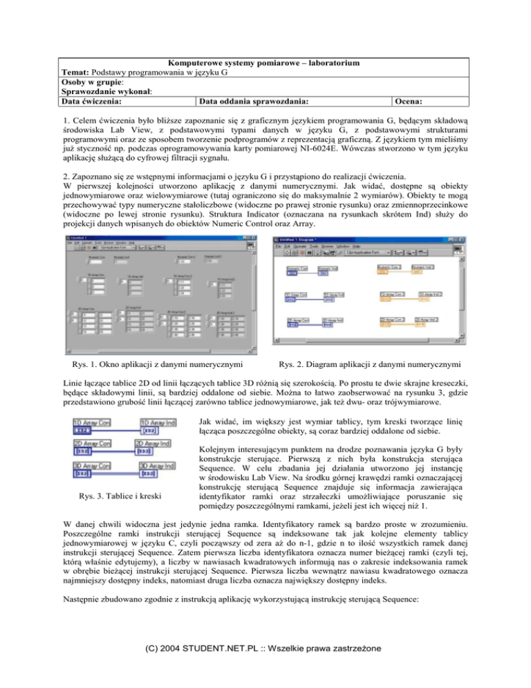 już styczność np. podczas oprogramowywania karty pomiarowej NI-6024E. Wówczas stworzono w tym języku